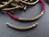Please note: These metal beads were strung with red 8mm gemstone beads in photos above