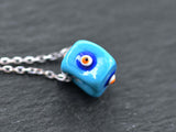 Blue Evil Eye Necklace, Protective Turkish Nazar, Good Luck Gift, Sterling Silver 18'' Chain