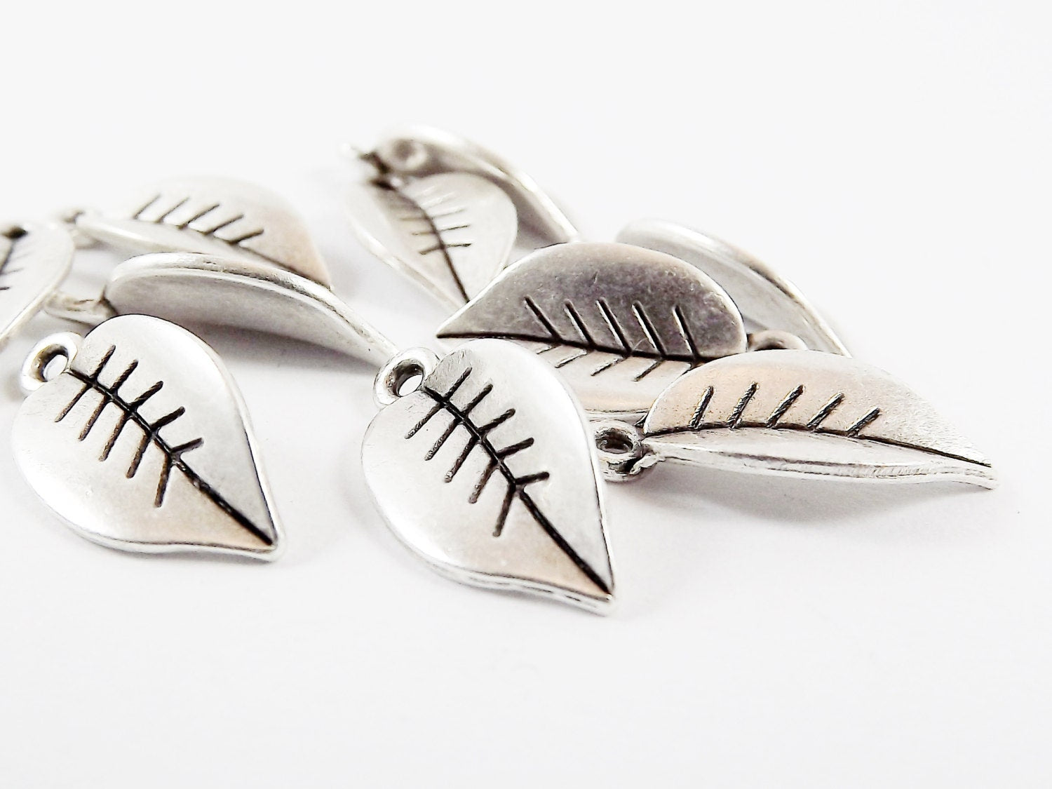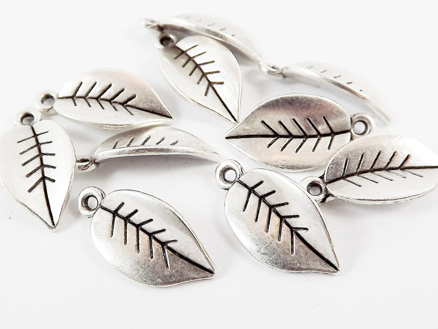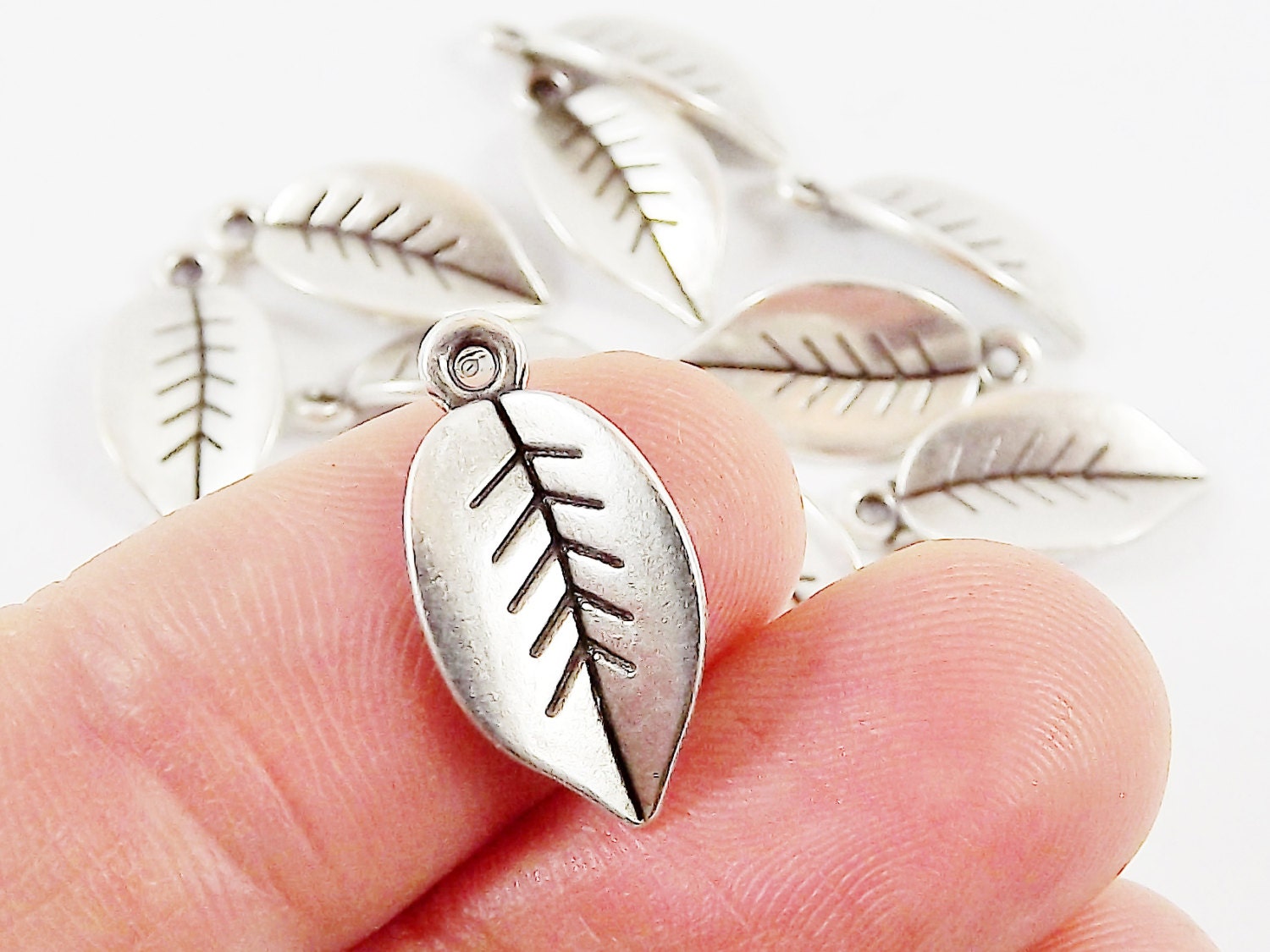 A pack of 10 Matte Silver Plated simple leaf charms.