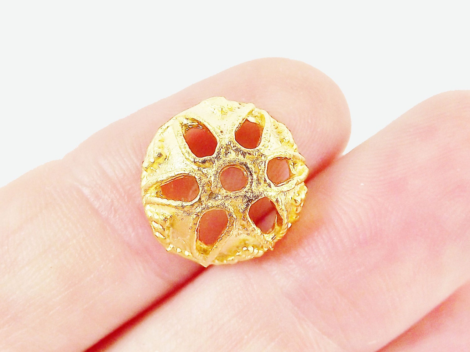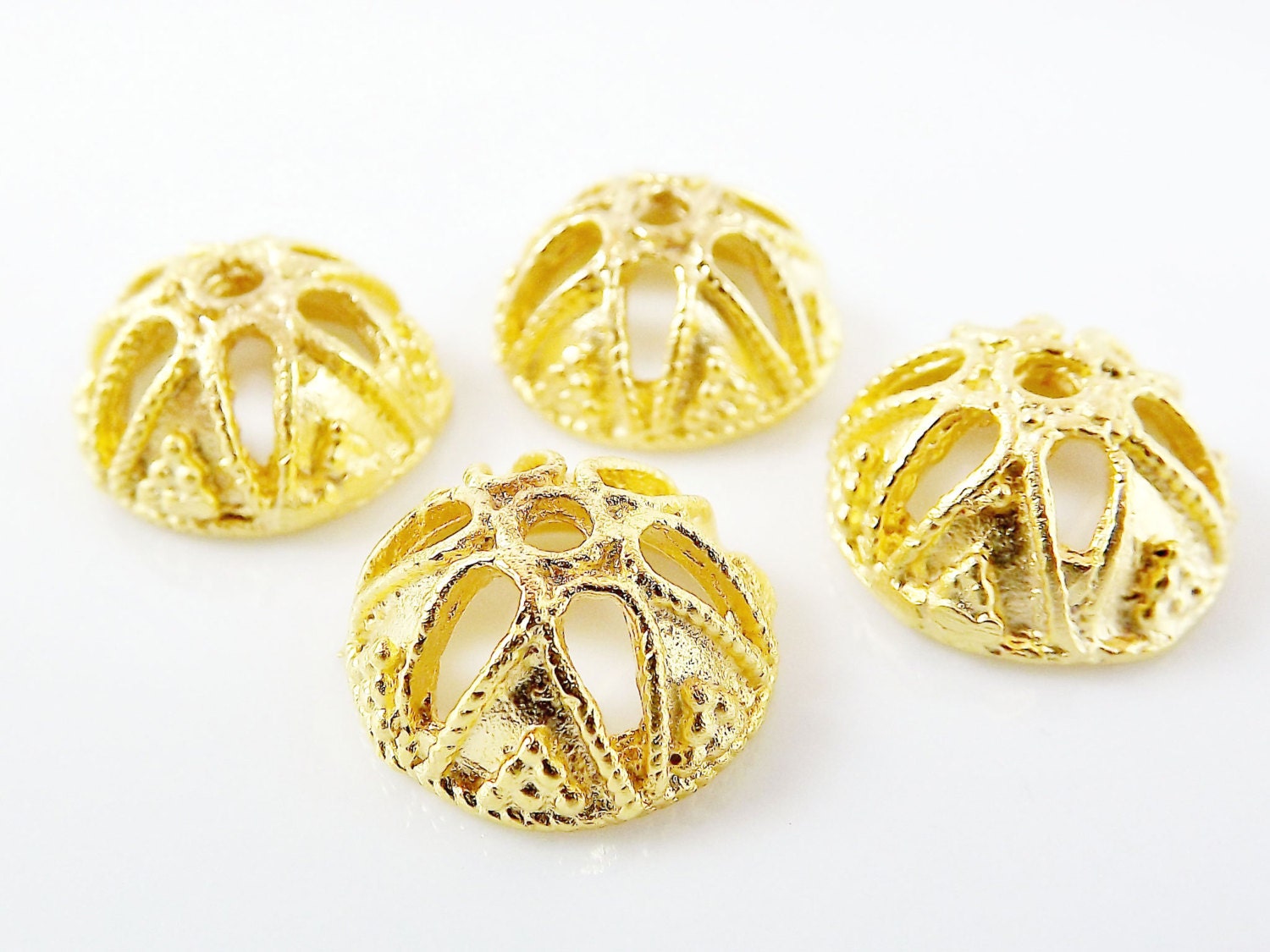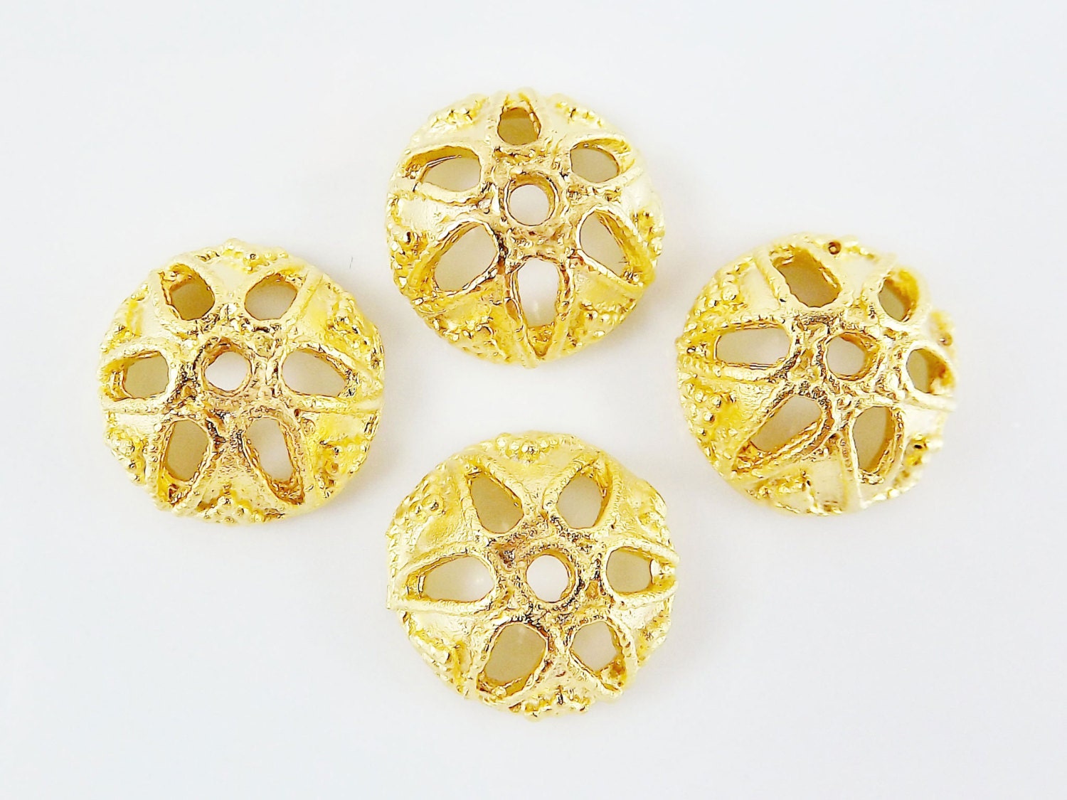 4 Tibetan Bali Style Bead End Caps - 22k Matte Gold Plated Round Bead caps