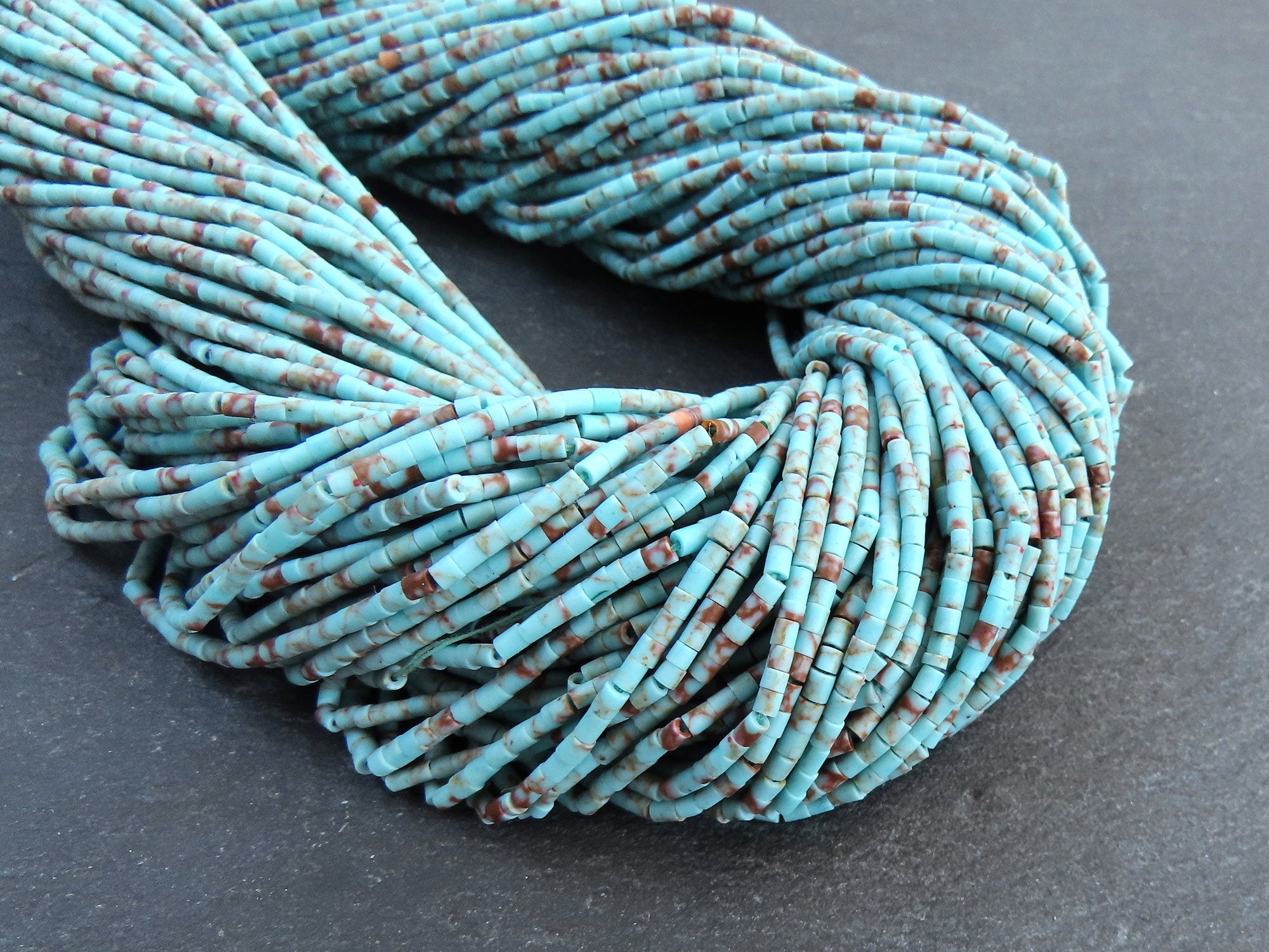 5 Afghan Seed Bead Strands, 2mm Afghani Turquoise Matrix Tiny Seed Beads, Tube Heishi Loose Beads, Gemstone Beads, 5 x 14inch strands