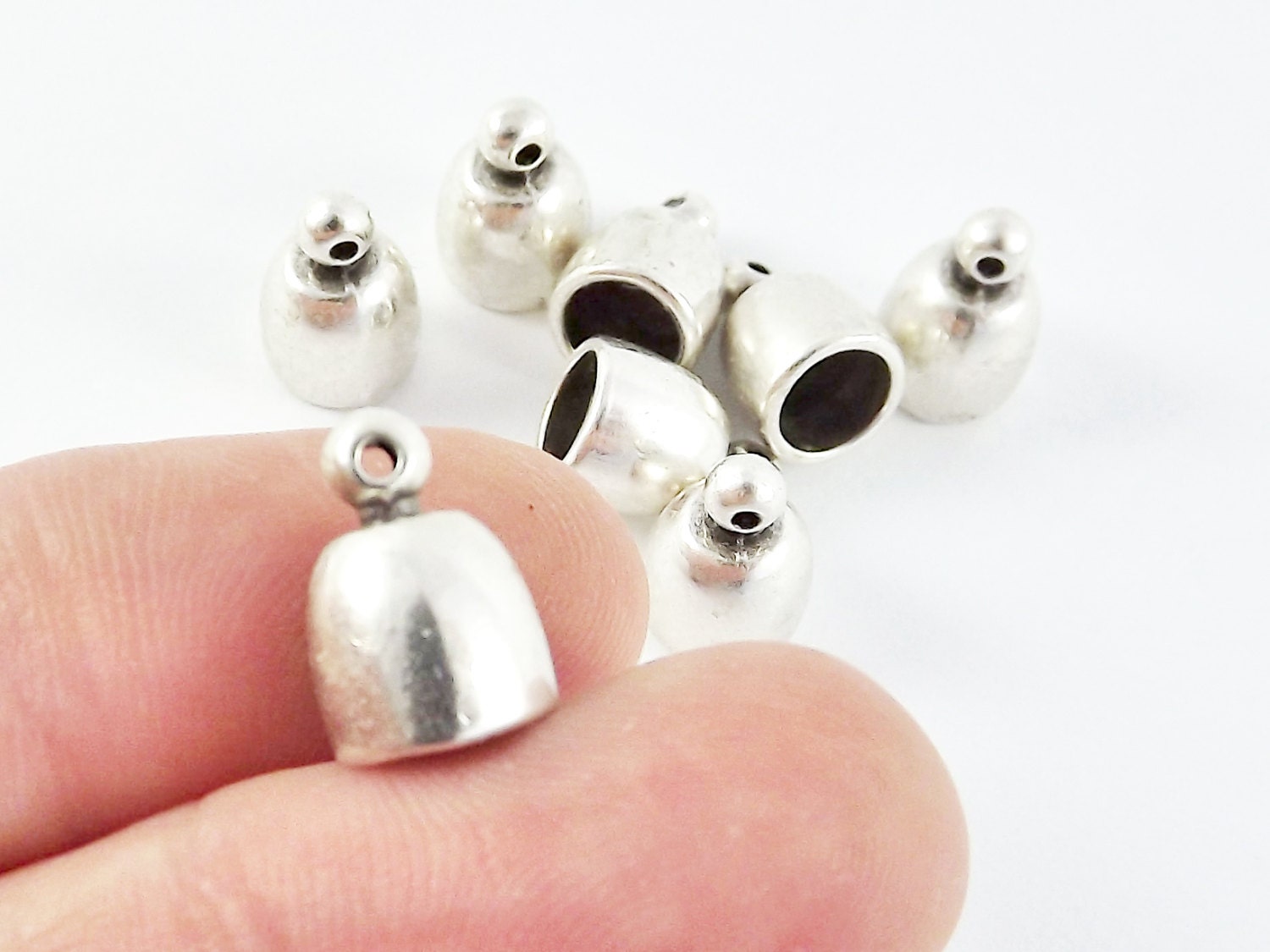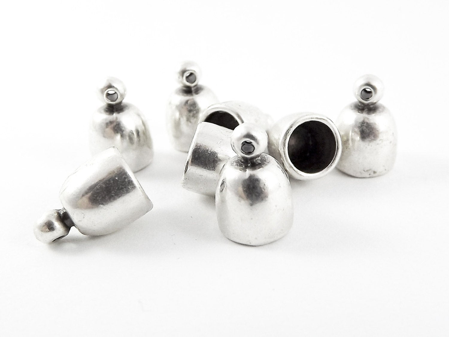 A set of 8 excellent quality matte antique silver plated cord ends. Great for leather cords.