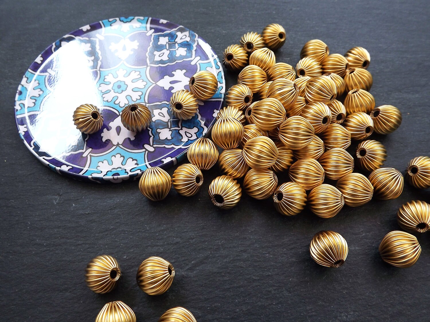Excellent quality 22k matte gold, round corrugated hollow bead spacers.